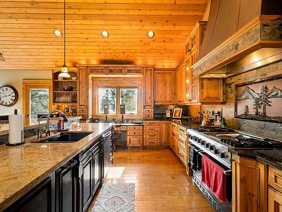 Welcome to the home of your dreams. Incredible estate nestled in the woods above Liberty Lake. A walk inside opens to a stunning great room space, featuring soaring wood accented ceiling & custom beams. A few steps & you'll find yourself in the gourmet kitchen where luxury abounds w/ custom built cabinetry & a butler's pantry. Also on the main floor, master suite boasts a gorgeous fireplace, and exposed beams. Additional main floor suites ensure perfect comfort for family & guests. Adjacent the suites, lies a premier theater room w/ full kitchen, giant island, & an "eagles nest" deck. Outdoor amenities include: sand volleyball court, full sport court, pool area, water feature, & firepit. Daylight walkout basement has access to all of this + hot tub and playground area. The basement also features a third full kitchen, bunk room, workout room, & more. A quick leads you to an amazing shop space w/ 3 oversized bays, backup generator, & radiant in-floor heat. There is nothing out there like this, come see today!