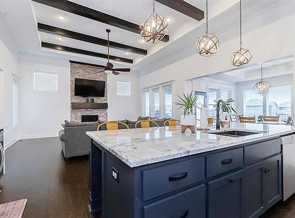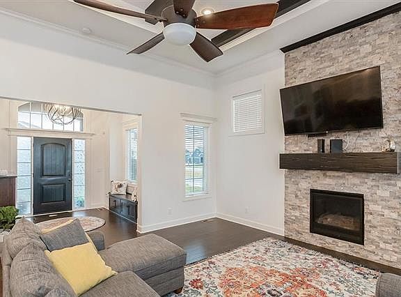 Stunning Pikewood plan by Summit Custom Homes! Great rm w/hardwds, tons of natural light, high ceils w/wood beams. Absolutely stunning white kit w/stainless steel appls, gas range, granite, WI pantry, buffet w/wine cooler. Formal dine that walks out to covered patio. 3 spacious BRs upstairs. Master Suite includes trey ceil, whirlpl tub, tiled shower, granite &tile, nice WI w/laundry rm! Finished LL w/rec rm, wet bar, 3 BRs &2 full bath. Great storage! Fenced yard! Neighborhood pool, play area, &fishing lake. Hurry!
