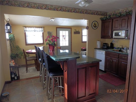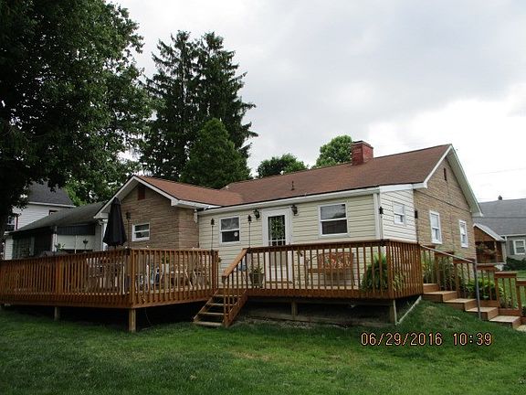 Move right in, absolutely adorable house. Beautiful cherry kitchen with custom made island with sit up bar area, ceramic tile floor in Dining area and kitchen. Fresh paint and updated bath with built in linen closet and ceramic tile. Large closet space in the middle bedroom. First floor laundry, perfect all one floor living. Built in T.V. cabinet in master bedroom. Covered front porch for your porch swing and more. Large rear deck and a new 8 X 12 storage shed with porch and two entry doors for convenience, also storage in the attic. Stay cool in the summer with central air.