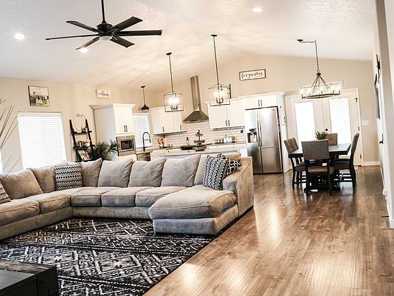 This home features 3 oversized bedrooms downstairs with a large bonus room above the garage that can be used as a fourth bedroom or family room and features two closets and a full bathroom. Master bedroom features a walk-in closet and a large bathroom with an oversized marble tiled shower with dual showerheads. Large open floorplan, great for entertaining! Custom kitchen with quartz countertops, stainless steel appliances, a mini-fridge built into the island, and undercabinet lighting. The living room features a custom stone fireplace that extends up to peaked 12-foot ceilings. Oversized 3 car garage with overhead storage and custom 9-foot doors, perfect for parking a boat in! Must be pre-approved to see.