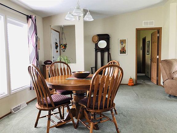 Light airy specious and well maintained mobile home situated in the 4 Seasons Park. Enjoy the recreational facilities, walk to restaurants and shopping. Easy access to Rockford and Chicago. This home features a spacious floor plan, beautiful kitchen with island, and a large dining room for entertaining. Living room with large bay windows and fireplace and a master bedroom with large closet and bath. Appliances stay, microwave 1 year old, water softener rented. Garage storage system does not stay.