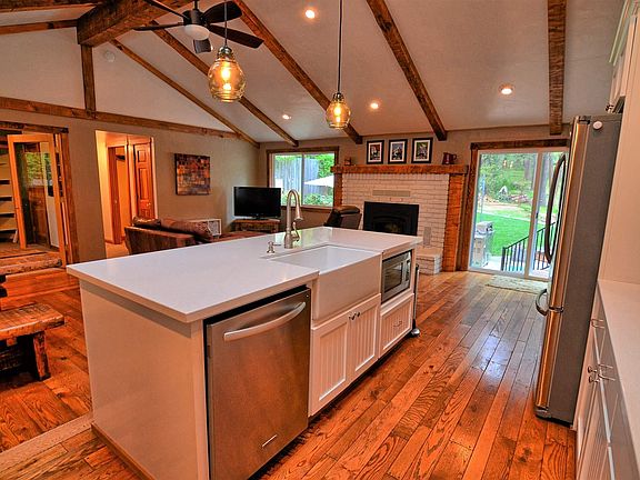 Room to Roam, This mountain home is what you have been looking for. A perfect blend of Modern Rustic styling and custom touches make this home one of a kind. True craftsmanship in every detail from the Mill work to the Modern Kitchen. This home boasts 3 bedrooms plus a den, 3, full baths that have been completely updated. Private master bedroom with sitting area and gas log stove. Large master bath with walk in shower. Beautifully landscaped with large patio. Approx. .32 of an acre backing to the National Forrest gives the opportunity to hike from your back door. 24X35 Garage give you plenty of space, Detached workshop and lots of level parking.