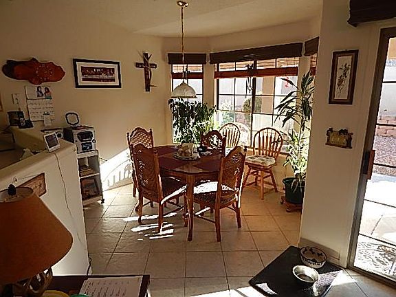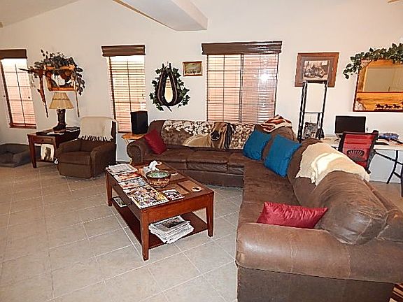 This home could work for snowbirds or year round residents. A nice grassy front yard is maintained by the HOA and the backyard is on an automatic drip system that waters all the plants if you are away for extended periods. A good centrally located 24 hour gated community that is close to your exclusive Mesquite Vistas Sports Center. This is an exclusive facility that features a large outdoor pool, hot tub, tennis and pickleball courts. In addition there is a workout room with machines, free weights and other amenities. This home has 2 bedrooms plus a den/office, an open concept, high ceilings, and a 2-car garage. It is a very quiet neighborhood and has a private backyard with privacy block walls on 3 sides. The floors are all tile with the exception of the bedrooms which are carpeted. Includes all kitchen appliances and the washer/dryer.