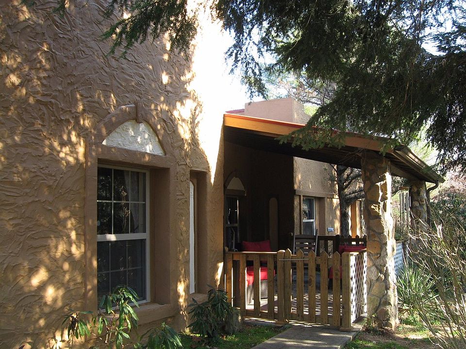A very uniquely built home, partially underground, four bedroom, two bath, family room, office, covered patios, 4 car garage (one bay has overhead door), steel storage shed, barn, pond, a get away cabin, all situated on 8 acres, fenced for horses or livestock. Has beautiful views, very private, and so peaceful. Make an appointment to see this.