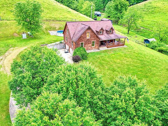 Welcome to this beautiful 3 bedroom, 2 bath wood home that exudes charm and has many great features. From the moment you walk in the door you are surrounded by gleaming hardwood floors, custom wood cabinetry, and beautiful wood work throughout creating a cabin-like feel reminiscent of serene retreats. The main level boasts a spacious living room with a gas fireplace where you will enjoy cozy evenings, a well-appointed kitchen that is perfect for the chef in the family, a separate laundry room that you can enter from the back porch, all 3 bedrooms are on the main level including the Primary with its own private bathroom. The upper level has a large loft area overlooking the living room, this versatile room could serve as a 4th bedroom, or a family room. The basement surprises with two finished rooms, ideal for a home office, gym or additional living space. Outside you’ll find a beautifully maintained concrete driveway leading up to the 2 car garage where you can park and go directly into the home. The home sits on 2 gorgeous acres overlooking the countryside, enjoying mornings sipping your coffee or entertaining guests on the wrap around porch, an above ground pool and plenty of room for a garden are some of the extra features. This home is perfect for anyone looking for a comfortable large home with stylish living space.