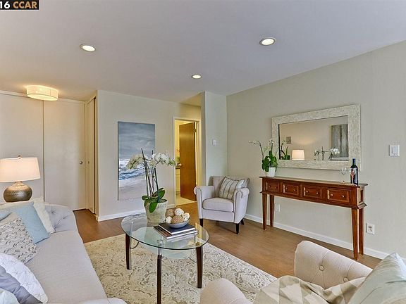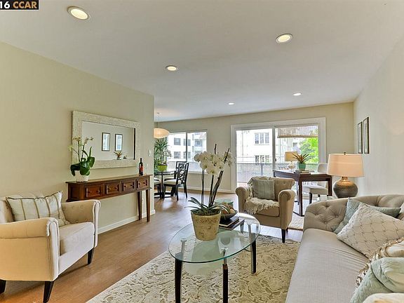 This bright 2 bedroom/2 bath spacious condo is located in an accessible area in Oaklands Adams Point neighborhood. The floor plan features an open living and dining area. New hardwood floors throughout, the kitchen offers modern cabinets with ample storage, a gourmet sink with extendable faucet, full-size triple drawer large refrigerator included. This corner unit is located on the 2nd floor with west facing windows and a sliding door with views of the sky and mature trees. Large balcony area with ample room for a BBQ and seating. One gated parking space and a secure storage locker. With a WalkScore of 95 and BikeScore of 87, you will never run out of places to go. Walking distance to Lake Merritt and weekly Farmers Market, close to Whole Foods and Trader Joes as well as popular dining spots and bars.