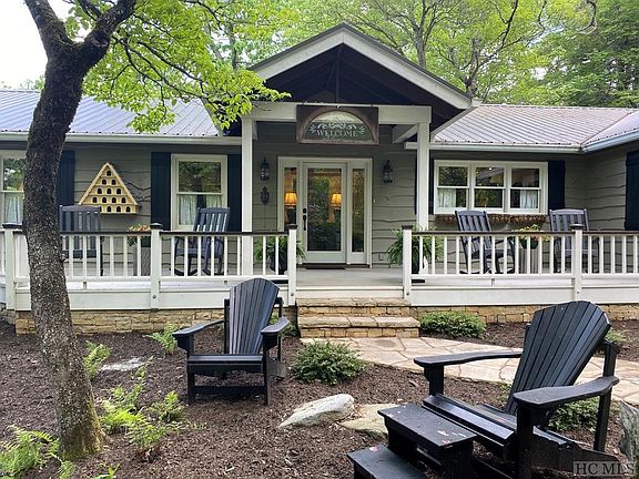 This wonderful home is now offered unfurnished, ready for the new buyer to make it their own. Charming total renovation in 2019 by Atlanta designer in Stillmont neighborhood between Highlands and Cashiers. Cottage style home on 3.6 acres, nestled at the end of long driveway amidst lush, flowering landscape. Recent additions include hardwood floors throughout, master suite with sitting area, stainless kitchen, two large porches, metal roof, interior/exterior paint, all doors, HVAC, large fenced/gated area for pets, landscaping/stone sidewalk, and interior/exterior lighting. Additional two en-suite guest rooms and large garage. Peaceful, one level living. The crawlspace has been encapsulated. Beautifully maintained and move-in ready!