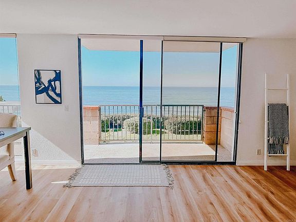 Welcome to this rare gem: an end unit 1st floor oceanfront condo that offers Unobstructed breathtaking water views from both the front and side of unit. This unique property features a wraparound deck that extends to all bedrooms, providing an unparalleled opportunity to soak in the serene coastal ambiance. As the only unit in the building with this extraordinary feature, you'll relish the exclusivity that comes with it. Accessing your home is a breeze with convenient elevator service directly to your two garage spaces, complete with extra storage closets for all your beach gear. The community amenities, include a refreshing pool, spa, sauna, event room, and a lovely grassy area that overlooks the picturesque Del Mar Bluffs. Enjoy direct access to scenic coastal trails via a secure, locked community gate. Ideally situated just steps away from the vibrant Del Mar Village, this condo is surrounded by shopping, gourmet dining, pristine beaches, and exciting water sports. Experience the ultimate beachfront lifestyle in this stunning oceanfront retreat!