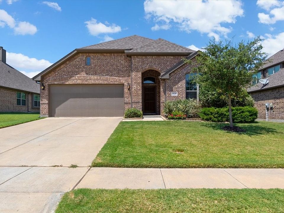 Lovely, barely lived in Stone Hollow home in Van Alstyne ISD. This home is 3 bedroom 2 bath with an open floor plan. One of the VERY BEST things about this home is that it backs up to green space owned by the HOA and the view from your back patio is a pretty tree line. This street has 60 ft wide lots. The front entry and hallway has hand scraped hard wood flooring. The spacious kitchen has granite counters. The kitchen is open to the family room and dining area. The back of the home has tons of large windows overlooking the spacious backyard. The master ensuite bedroom is 15x14. The bathroom has dual vanities, garden tub and separate shower. Walking distance to Partin Elementary. Georgetown has a large community pool and playground. Tennis Courts located at the end of the street. This home is well priced and ready to sell. Seller can do a quick close if needed. There has not been a Stone Hollow home in this Georgetown neighborhood that has sold for less than $400,000 since 2021.