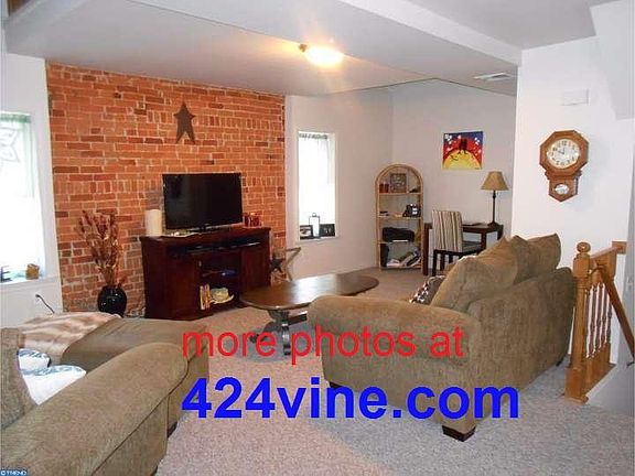 1890's Brick Carriage House with modern efficiency. Very charming and cozy. See more at www.424vine.com Water & Sewer included. Tenant pays electric / trash / broadband