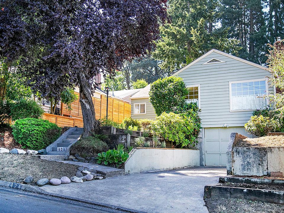 Darling COLLEGE HILL bungalow in ideal location with a View. Light and bright with wood, carpet and vinyl floors, coved ceilings. Forced air Gas heat and Gas fireplace insert in living room. Freshly painted interior, vinyl windows. Large updated kitchen with gas range, built-in desk. Formal and informal dining with china cabinet. Full basement with additional room (office?) plus storage and single car garage with remote opener. Terraced gardens, new fence and level yard. House is in great condition and is on a quiet street in a prime location. South Eugene schools. Sweet home in wonderful neighborhood! Near restaurants, transportation, university. Liz Kramer 541-729-3026 or lizkramer158@yahoo.com Small dog under 25 lbs with additional deposits. 1st/last month's rent plus security deposit plus $100 pet deposit 1st and last month's rent plus $500 security deposit plus $100 pet deposit