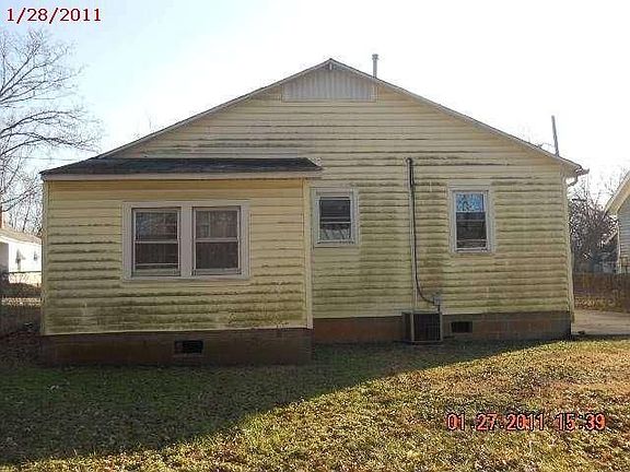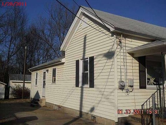 Exterior Features: Single story creme and white colored home has asphalt shingle roof, concrete drive on side of home. Wood/vinyl exterior wall needs some cleaning, covered porch in front of house. curb appeal looks fair overall. Interior Features: Looks clean and in fairly good condition, living has wood panel walls and carpet. Kitchen cabinets, sink, and some appliances present, vinyl tile floor. Bedrooms look fine, have wood panel walls as well, carpet, & closet space. Bath is intact with appliances present. Hot water tank in home.