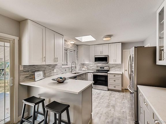 Tastefully updated 2408 square foot 4 bedroom 3 bath home with huge finished basement. Brand new stainless Samsung appliances, quartz counter tops, breakfast bar, and tile floors in open kitchen and dining. All bathrooms have custom tile including flooring, bath and shower surrounds. Hardwood floors on main level, walk in closet in master, central heat and air. Large fenced yard with mature landscaping and trees includes playset. Attached workshop or utility room on oversized 1 car garage. RV or toy parking-no HOA. Minutes to light rail and public transportation, less than 20 minutes to downtown Denver. Close to hiking and biking trails, pubs, coffee shops, shopping and restaurants. 4th bedroom is non conforming, buyer to verify all info prior to close.