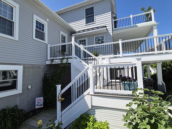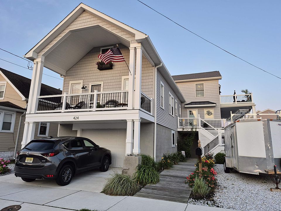 Custom craftsmanship meets beach-bungalow charm in this thoughtfully re-imagined 5 Bedroom 2.5 bath upside-down home. The 1920 cottage was lifted and expanded to showcase a sun-splashed great room beneath soaring ceilings, anchored by an indoor/outdoor gas fireplace. Two oversized sliders open to wrap-around decking with a covered dining alcove—ideal for summer entertaining—while a rooftop deck delivers postcard sunsets and front-row seats to Friday-night fireworks. Downstairs, the bedroom level centers on a generous primary suite with dual closets, private deck access, and a spa-style bath featuring a soaking tub and oversized tile walk-in shower. A flexible front bedroom doubles as a home office. An ingeniously repurposed wing of the original bungalow offers its own sitting room, kitchenette, three additional bedrooms, and a full bath—perfect for visiting guests or multigenerational living. Bonus spaces abound: a finished attic dormer for play or overflow sleep, a ground-level vestibule that opens to the backyard, and a heated-floor band room. The deep garage fits two cars when shelving is removed, while additional storage lines the entire lower level. The home also features a Whole House filtration system, delivering filtered water to every bath and faucet. The backyard is a hidden gem, featuring two cherry trees, a peach tree, two apple trees, a fig tree, raspberries, strawberries and blackberry bushes—with plenty of room left for your dream garden. Great neighborhood, close to Wildwood's finest waterfront dining establishments and the New Marina at the Wharf. Move-in ready, coming fully furnished and designed for effortless coastal living—this is the rare home that balances character with modern convenience. Easy to show. Lockbox. OPEN HOUSE SATURDAY JUNE 21ST 10:00 AM- 1:00 PM Seller is a Licensed New Jersey Real Estate Agent