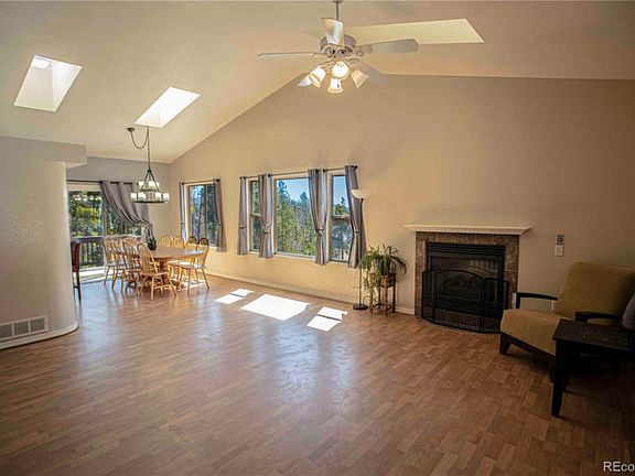 Single-owner modern mountain retreat located in the Dory Lakes Subdivision of Black Hawk, Dory Lakes is a community with private fishing at 3 stocked lakes and private park for it's owners. Vaulted ceilings, attached two-car garage with storage space, Walkout ranch, unfinished walk-out basement. 1.29 acres of mostly flat, partially landscaped yard with a fenced-in dog run and garden area. Private setting surrounded by heavily wooded lots. Features a hot tub, fire pit, garden pond, 10x10 barn ready for chickens or goats, utility shed, large parking area on paved flat driveway. Extra rooms in the basement. Just minutes away from Golden Gate State Park. Peaceful and scenic, welcome home!