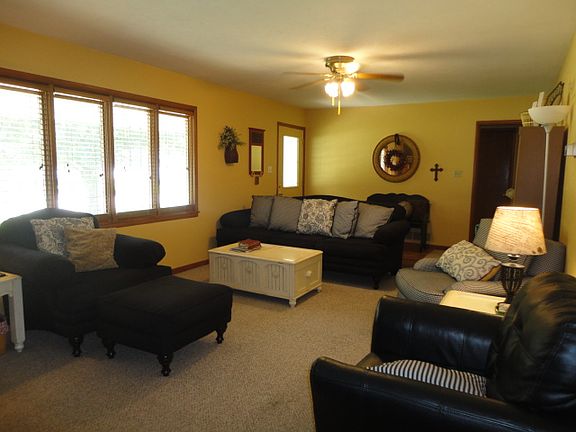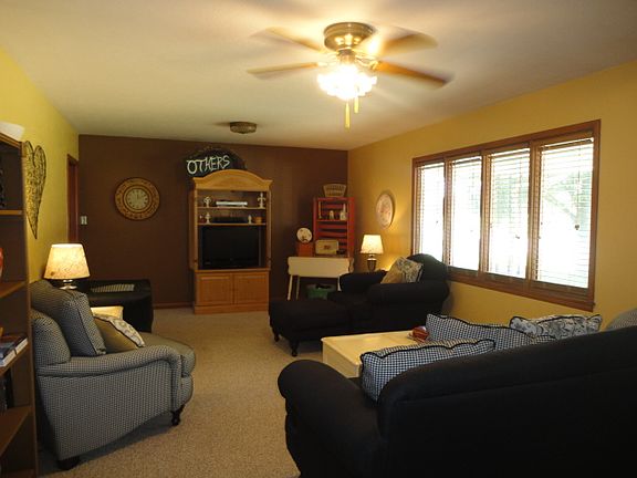 Enjoy sunsets on the covered porch of this lovely 4 Bedroom 2 Bath home with over 1950 sf! Nice floor plan with a large living room, great kitchen, and a huge formal dining that could serve as a 2nd living area. Split bedroom floor plan, with 2 bedrooms on each end of the home. New heat pump installed in June 2012. Large utility room which leads out to the drive through one car garage. Gorgeous yard with mature trees! Close to schools and downtown area. Lots of charm throughout this home. A Must See! Close to Stockton Lake!