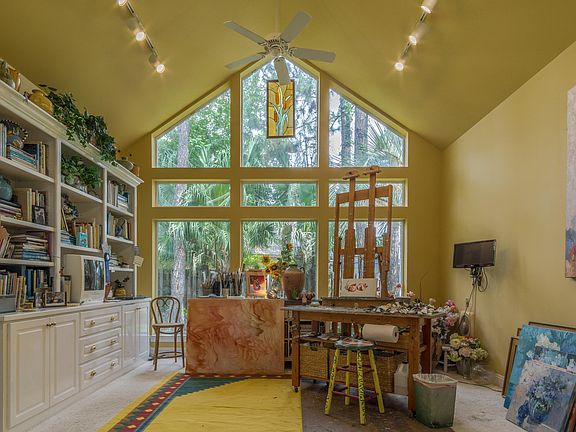 Amazing Bay Point Home.This home has extensive crown moldings throughout.New 2019 refrigerator, Washer and Dryer, and a new separate Ice maker. The master has its own private Den which leads to a private art studio which could be used for an office, game room, endless possibility. The 15-20 foot ceilings make this home feel like a castle.It has only has one owner, a Nationally recognized artist. It is beautifully decorated with a unique and very creative design. Custom bookcases incorporating storage for clothes, books all done my a local master cabinet maker. Top of the line Bosch dishwasher.Brass canopies over some windows,All custom window blinds, no further treatments needed.Detailed stairway,Huge screened in porch with furnishings. Sprinkler system with a well, over-sized lot.