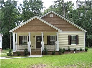 Bungalow home with welcoming front porch in Atrium Park, all on one level with 3 bedrooms and 2 baths; hardwood floors in living space! Open floor plan with formal Dining Room and Great Room being open to the kitchen w/SS appliances. Home is only 5 years old and has been well maintained. Walk-in storage under the home which has a moisture barrier. A deck overlooking the privacy fenced backyard which backs to an 8 acre green space completes this great home