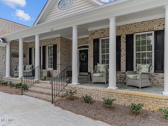 This elegant brick home, situated on the 17th hole within the exclusive gated community of Porters Neck Plantation, offers a luxurious and serene lifestyle. With 4 bedrooms and 3 1/2 bathrooms, this residence has been freshly painted and features new carpet in the bedrooms, and hardwood floors throughout the living spaces. The welcoming foyer opens to a cozy living room, complete with a fireplace and built-in bookshelves, creating a warm and inviting atmosphere.