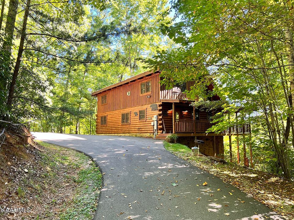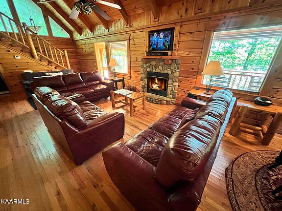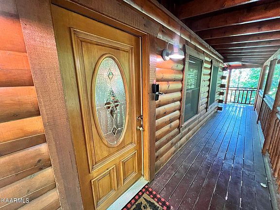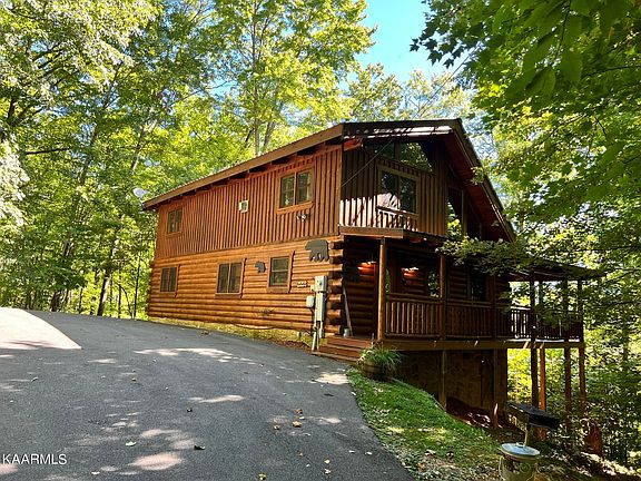 Huge price drop. Owner has had a major life event and said SELL NOW. Price dropped from original list price of $849K to $699,900!!! From the world renown Glades Rd Arts and Crafts loop, you are less than a mile and a half to this 4 bedroom, 3 bath log cabin, and approx. 15 minutes to downtown Gatlinburg and the Great Smoky Mountains National Park. As you pull up the gently sloping asphalt driveway, you will notice Black Bear Magic is in a secluded forest with no visible neighbors, and plenty of room for multiple car parking. There are only 2 steps up to the covered decks on the side and back of the cabin, plus a very private, separate deck for the hot tub. The great room has soaring cathedral ceilings, and the gable end has custom etched glass with a scene of the woods. Two sofas and a love seat surround the gas log fireplace and Roku TV. Enjoy the rockers on the covered decks on 2 sides of the cabin and a very private deck for the hot tub. There is a spacious kitchen with seating for three at the counter and a separate dining area with seating for 6 more guests. Upstairs are two king size master suites with ensuite bathrooms and cathedral ceilings. The largest Master has a king, 4 poster, log bed and a double sided gas log fireplace so you can sit in the double wide jetted tub and soak, while viewing the fireplace or relax in bed next to the other side of the fireplace. This bedroom has a unique "barn door" that looks out to the living/dining room. Total privacy with no neighbors in sight. True 3/4 oak hardwood flooring on the main floor with carpet in the upstairs bedrooms. There is a sunroom for the foosball table and there is plenty of room to put a pool table by removing the futon in the living room. A stacked washer/dryer and well as all furniture does convey.