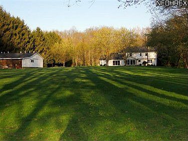 Enjoy the country'' in this beautifully landscaped colonial home with 5 bedrooms and 3.5 baths. Family room with brick fireplace. Formal LR and DR. White kitchen cupboards with built-in ovens, Jenn Aire cook top, trash compactor, dishwasher and eat-in area. Hardwood floors in foyer and kitchen. First floor den and full bath in adjoining laundry room, could be additional bedroom. Enclosed sunroom. Patio, 40x40 barn, circular driveway* Backs to Rocky River with stream at side of property. Great location with excellent highway access.