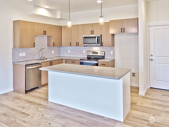This home, the Cypress plan, is 1334SF, 2BR, 2.25BA, 2-car garage w a spacious great room, open kitchen w eating bar, quartz countertops, two-tone cabinet package with soft-close doors and drawers, water-resistant planked flooring, nine-foot ceilings on the main, primary suite with luxury bath, and convenient laundry. These all-electric homes include energy-efficient mini-split heat & A/C units, fireplaces, & 80-gallon hybrid heat pump water heaters, plus an energy-efficient insulation package w soundproofing. The Alpengrove neighborhood has an appealing modern architectural aesthetic w inviting front porches, both private & shared outdoor spaces, plus quick, convenient access to I-5 and all that Bellingham has to offer.