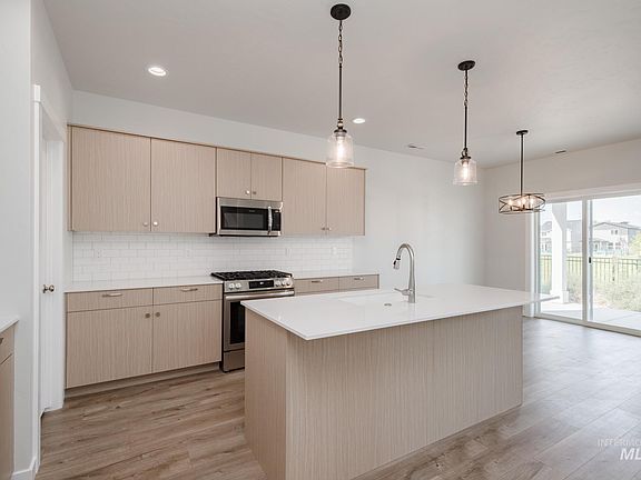 Fall in Love with Low Rates! Promotional rate as low as 2.99%. Ask a Sales Specialist for details! This brand new home located in vibrant Meridian, Idaho welcomes you with open arms. The Hugo 1650 is endearingly charming and reassuringly practical. The main level welcomes occupants and guests alike with open and friendly living spaces. The kitchen boasts upgraded finishes, including stainless steel appliances, a gas range, and stylish solid surface countertops. Easy access to the yard is just right outside of the dining room. Head upstairs where a primary suite spans the entire rear of the home and contains a walk-in closet and spacious en suite bathroom. The two other bedrooms and the laundry room are also situated upstairs along with a full bathroom. The garage offers plenty of space to park cars and toys or use as storage. With thoughtful touches throughout, the Hugo is designed to enhance your lifestyle. You'll quickly feel right at home. Photos are of the actual home!