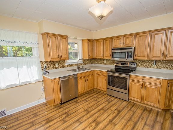 Welcome home to this spacious cape cod on parklike lot, which features 3 bedrooms, 2 full baths and enclosed back porch! Living room and dining rooms feature neutral carpet, woodburning fireplace and dining room built ins. Eat-in kitchen offering all appliances has been updated with Kraftmaid maple tone cabinetry with Corian counters and wood-look laminate flooring. First floor full bath has been updated as well and first floor also features newer carpet in bedrooms, fresh paint and light fixtures. You will love the 2nd floor dormer master suite with updated full bath and access to balcony over garage. Full basement has been recently waterproofed and painted and just waiting for you to finish for additional living space. Enclosed back porch accesses attached garage and overlooks parklike lot. Enjoy immediate possession and convenient location near freeways, shopping, Metroparks and more!