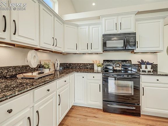 Welcome to this immaculate, move-in ready home. Step inside to find all-new interior paint and pristine hardwood floors gracing the expansive great room, complemented by new carpet throughout the rest of the home. The beautifully remodeled eat-in kitchen features stainless steel appliances, under-cabinet lighting, and a stylish design perfect for culinary enthusiasts. The fantastic floor plan includes a wide-open great room ideal for entertaining, and a versatile flex space adjacent to the kitchen that can serve as an office or formal dining area. Enjoy outdoor living on the newer Trex deck, which offers stunning views of the future Coleman Park and the majestic mountains beyond. Experience the ease of lock-and-leave living with an HOA that takes care of landscaping and snow removal, allowing you to enjoy a carefree lifestyle. The main level primary bedroom is a serene retreat with a remodeled 5-piece en-suite bath and a spacious walk-in closet. This home includes two bedrooms on the main level and two additional bedrooms in the fully finished basement. The basement also features a cozy family room, a wet bar, and a full bath, providing ample space for guests or family activities. Don’t miss the opportunity to make this beautiful, move-in ready home yours. Schedule a tour today and experience the perfect blend of style and comfort. Conveniently located near the Powers Corridor and all that it has to offer. Brand new roof installed May 2024