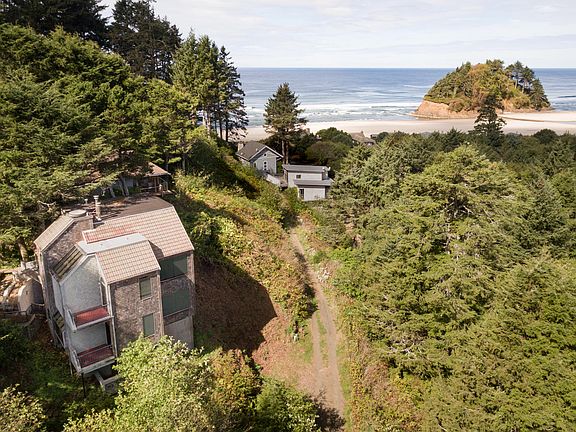 Ocean views from the beach at Proposal Rock all the way North to Cape Kiwanda! Designed with Mediterranean flair featuring floor-to-ceiling arched windows and tile roof. Glass ceiling in upper kitchen and glass windows in lower kitchen bring in loads of natural light. Each level hasa separate entrance, full kitchen, 2 bedrooms, 2 baths, fireplace, washer and dryer. Decks and courtyard provide outdoor living enjoyment places. Detached garage has bonus living space, plus a shop, office and deck. Property also has an automatic generator system. Located above the tsunami evacuation zone, but just a few minute walk to the beach. Unique opportunity for co-ownership or vacation rental. Offered furnished!