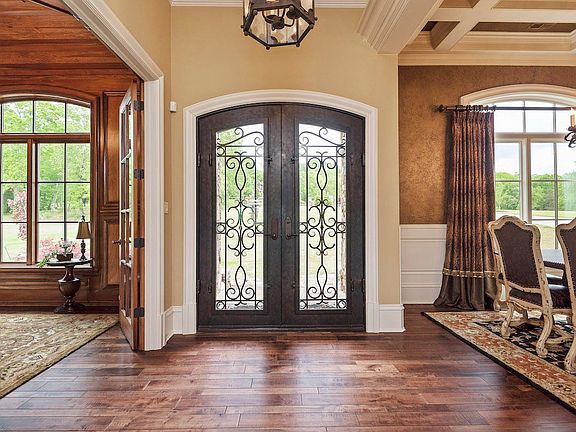 Welcome to the French Country Estate on Lake Meadow Way, a luxurious and relaxing primary residence and guest house on five pristine acres along the shores of Fort Loudoun Lake with breathtaking views. A private road leads to the home's gated entry and the beautifully landscaped grounds. The property is impeccably maintained featuring a main house with many custom details including classic French arched doorways, flared eaves and stone and brick construction. Impressive main level rooms include the great room with a recessed, paneled coffered ceiling, imported marble fireplace, hand scraped maple hardwood floors, gourmet kitchen with island, wood beamed, paneled and stained office, dining room with hand painted ceiling, spacious master suite with double trayed, vaulted, beamed ceiling luxurious master bath with heated floors and stone walk-in shower, two spacious guest rooms with ensuite baths, covered porch with stone fireplace, built-in TV, tongue and groove, barrel ceiling, spray misters, and 'wow' views. Flagstone pool deck and open patio facing the lake with covered outdoor kitchen and cabana bath. Second level with expansive, open game room and a Lower entertainment level featuring family room with stone fireplace, kitchen with hammered copper bar, media room (120" wall screen) with seating for eight, 200 bottle wine cellar with triple groin, copper leaf ceiling, a mirrored exercise room and a second master suite with ensuite bath and private entrance. The main house is served by a large inner courtyard with two, two car garages, and a brick arched porte-cocher with a beamed ceiling. The stamped concrete driveway winds towards the lake where you are greeted by a lovely 3600+ square foot guest house, perfect for friends and family, Inside the double door entry is open family room, custom kitchen, spacious master bedroom with double trayed ceiling, a guest room and a stamped concrete deck overlooking the lake.