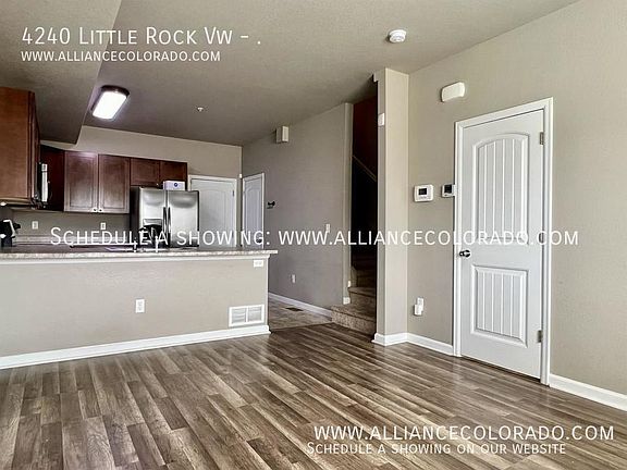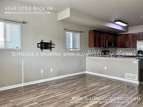 IMPORTANT: Schedule a showing on our website. All showings are scheduled online. www. alliancecolorado. com QUESTION ABOUT APPROVAL CRITERIA? Our complete approval criteria is posted on our website, please review there. Adorable 2-story townhome with finished basement located just minutes from Fort Carson with easy access to the Powers Corridor. Main level features LVP flooring throughout. Kitchen boasts stainless steel appliances, rich mahogany cabinets, and breakfast bar seating overlooking the family room. Half bath also located on main level. Upstairs, you'll find two spacious bedrooms each with their own attached full bath and walk-in closet. Gorgeous mountain views from the front bedroom. Finished basement showcases a cozy rec room with full bath. Built in 2018 1552 sq ft 2 bdrm, 3.5 bath Ceiling Fans Central Air Washer/dryer included 1-car attached garage ~Available NOW! ~Rent $1650 - tenant pays all utilities; less trash ~Move-in Cost (due at lease signing) Security Deposit (equal to 1- or 2- month's rent: Resident Score dependent) OR ask us how to waive your security deposit! First month's rent in full Lease Administration Fee: $79 (one-time, non-refundable) Resident Benefits Package: $40.95 (monthly; no prorations allowed) Pets: monthly fee (non-refundable, never prorated) AND additional $300 deposit (if applicable) ~$50 (non-refundable) application fee per adult please review our approval criteria on our website before applying ~No smoking ~No marijuana growing ~Pets: NO PETS Alliance Property Management, Inc Managing Broker: Melissa Griffeth seven one nine, three five five, eight six eight eight www. alliancecolorado .com (click "for rent" to schedule a showing) Applicant has the right to provide Landlord with a Portable Tenant Screening Report (PTSR) that is not more than 30 days old, as defined in 38-12-902(2.5), Colorado Revised Statutes; and 2) if Applicant provides Landlord with a PTSR, Landlord is prohibited from: a) charging Applicant a rental application fee; or b) charging Applicant a fee for Landlord to access or use the PTSR. Report must include; *Name *Contact information *Verification of employment and income *Last-known address *Rental, credit, and criminal background histories, in compliance with Colorado law Reports must meet the following criteria; *Completed within the last 30 days *Made directly available to the landlord by the consumer reporting agency or through a third-party website regularly engaged in the business of providing consumer reports, in compliance with all applicable consumer reporting laws *Provided to the landlord at no cost *A statement from the prospective tenant that there has not been any material change in the information provided in the report