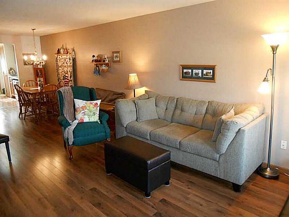 Wow! Well cared for and magazine beautiful. Newer wood floors (they just shine) in living room, dining room, kitchen, 2 bedrooms. Bright and cheery condo with bay window and door with front to back natural light and add the skylights!! This is a must see...one owner condo and her pride shows. Average: Electric $35 - Water $31 - Gas $36. Condo fee: $70 per month that includes mowing, snow removal, exterior insurance, exterior lighting. These are homestead taxes. No age restriction. Small dog and 2 cats are allowed to each home. Resurfaced black top, repaired vinyl repaired from mowing, new storm doors and shutters, roof 2009. As you can see, the condo ass. takes wonderful care of the 24 units.