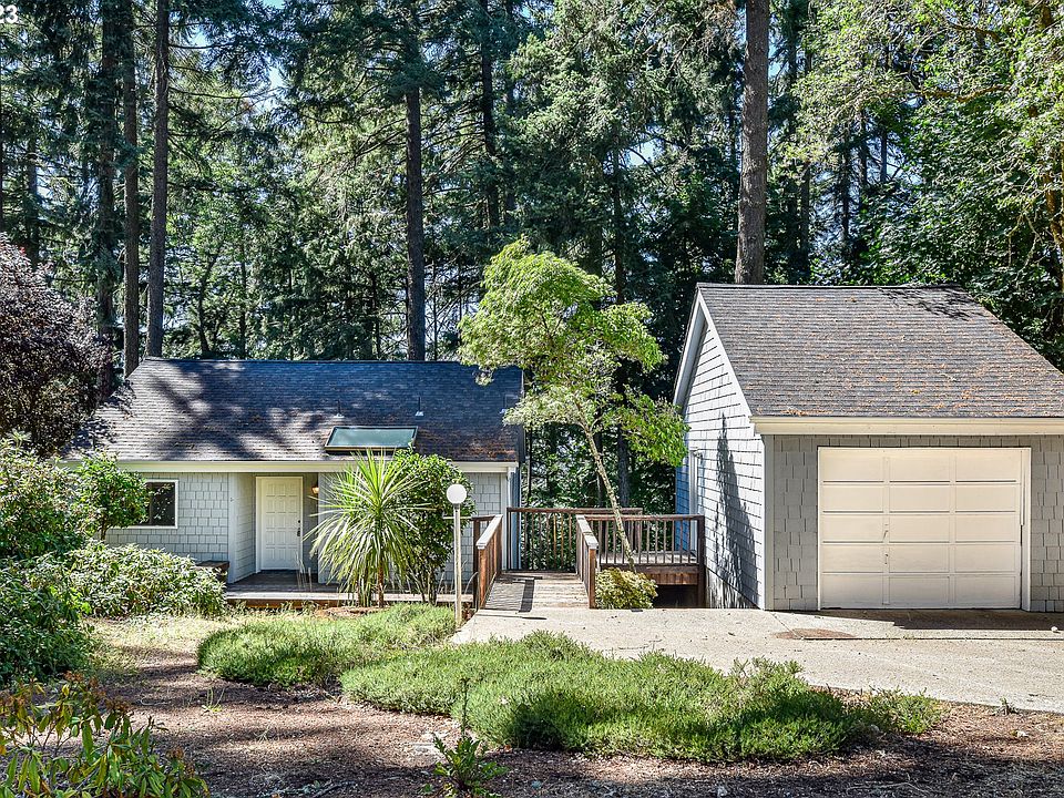Cute 2-bedroom, 1.1-bath home nestled in the trees in a highly desirable Southeast Eugene neighborhood. Special features include vaulted ceiling, fireplace, skylight, upper deck with great wooded views, detached one-car garage, expansive decking, and much more.