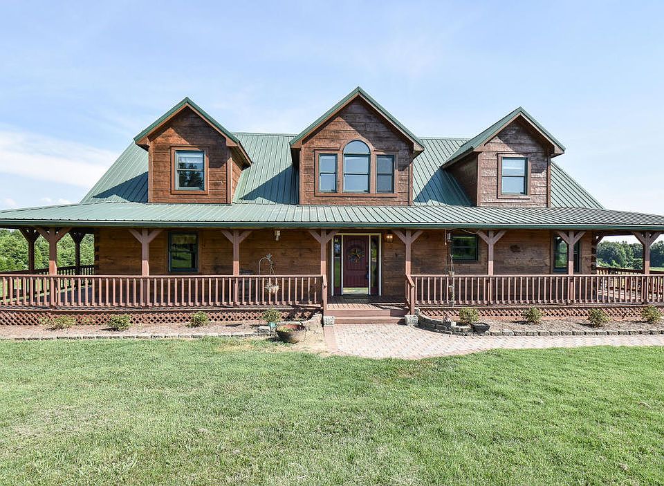 JUST WHAT YOU'VE BEEN WAITING FOR!This fabulous LINCOLN LOG home with wrap around covered porch sits atop a knoll overlooking 10 acres of rolling farmland. Step into the foyer and feel the stress melt away. The magnificent stone fireplace reaches to the ceiling and graces spectacular hardwood floors. Beautifully equipped modern kitchen has granite counters, stainless appliances, custom cabinetry. This property also includes a 24' x 30' barn. 5 of the 10 acres are fenced. A Kubota 2360 tractor with attachments convey with the property. Too much too list!