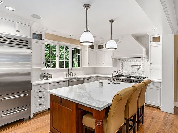 Prepare to be enamored by this exquisite estate! Nestled above Washington Park and The Zoo. The expansive .6-acre is gated and surrounded by mature trees that provide ample privacy. Step inside one of Portland's finest homes designed by Roscoe Hemenway. Discover a wealth of living space, accommodating both formal gatherings and relaxed everyday living. With extensive renovation by the renowned Jeffery Miller, this home has been transformed with modern amenities that seamlessly coexist with the timeless 1938 charm. The heart of this home is the custom chef's kitchen, equipped with top-of-the-line appliances, oversized island, and marble countertops. Unwind in the incredible covered outdoor living space overlooking the serene yard, complete with a cozy fireplace and outdoor kitchen. Immaculately preserved original hardwoods, add warmth and character throughout. Retreat to the spa-like primary suite featuring a fireplace, heated floors, and huge walk-in closet. The other generously sized bedrooms each have their own en-suits as well. The large, remodeled basement was designed for leisure and relaxation, offering a mini kitchen, game room, wine cellar and home theatre. Other exterior features include the Sport Court, hot tub, large yard, fenced in dog run, and play structure. Feeds into top rated schools, just a quick stroll to Hoyt Arboretum and get to downtown in minutes. This property is truly one of a kind in one of Portland most coveted areas! [Home Energy Score = 1. HES Report at https://rpt.greenbuildingregistry.com/hes/OR10218553]