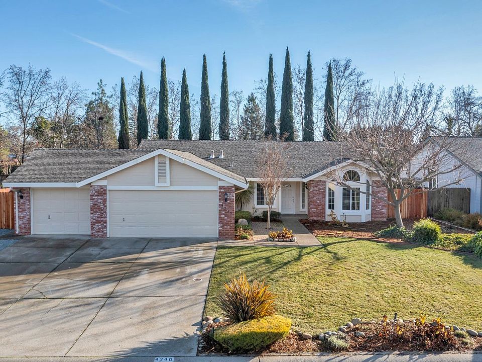 Welcome to 4240 Valtara Road - a fully transformed move-in-ready home offering a modern and comfortable lifestyle. The contemporary kitchen boasts new cabinets, granite counters, sink, and state-of-the-art appliances, including double ovens. Bathrooms feature new vanities, sinks, granite counters, and stylish towel bars, adding a touch of luxury. Every room reflects excellence, adorned with new ceiling fans with light fixtures. Updates extend to plumbing and lighting fixtures throughout, seamlessly blending functionality with aesthetics. Four bedrooms feature new carpeting, while other spaces showcase elegant vinyl plank flooring, creating a cohesive atmosphere. The exterior is both functional and delightful with a landscaped yard, automatic sprinklers, a large backyard concrete patio, and a concrete walkway around the home's perimeter. A double gate allows RV or boat storage. Mature trees provide shade and privacy, with Italian Cypress trees lining the back fence. This home invites you to move in and settle down. This home is in the Buckeye School District, a few hundred yards from Blue Oak Elementary and Camerado Springs Middle School. And a bit further is a public library and Community Center. It's one mile from the Cambridge Road on-ramp to Hwy 50.