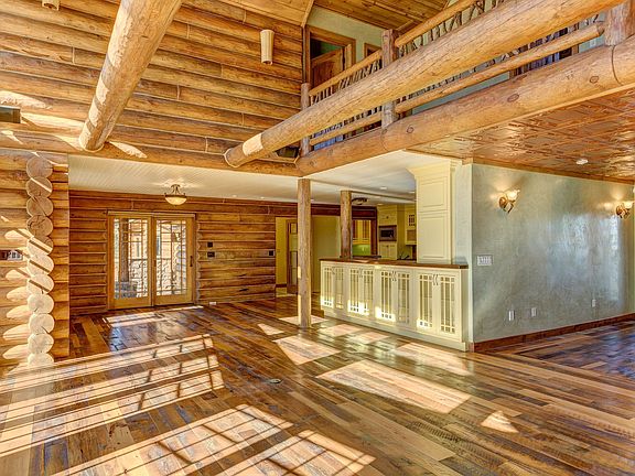 Stunning custom log home on 1.6 acres in American Ranch 3 bed/3 bath home features designer touches from all over the world! Dramatic vaulted/beamedceilings w/100 year old floors, Large double sided soap stone fireplace from Finland. Complete kosher Chef's Kitchen with 1950's Wedgwood stove, huge island copper sinks and more. Everything in this home is custom. formal dining room & separate family room. Large patio dining with outdoor fireplace.