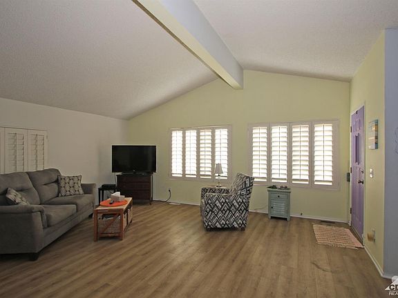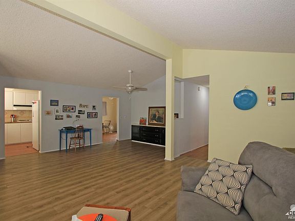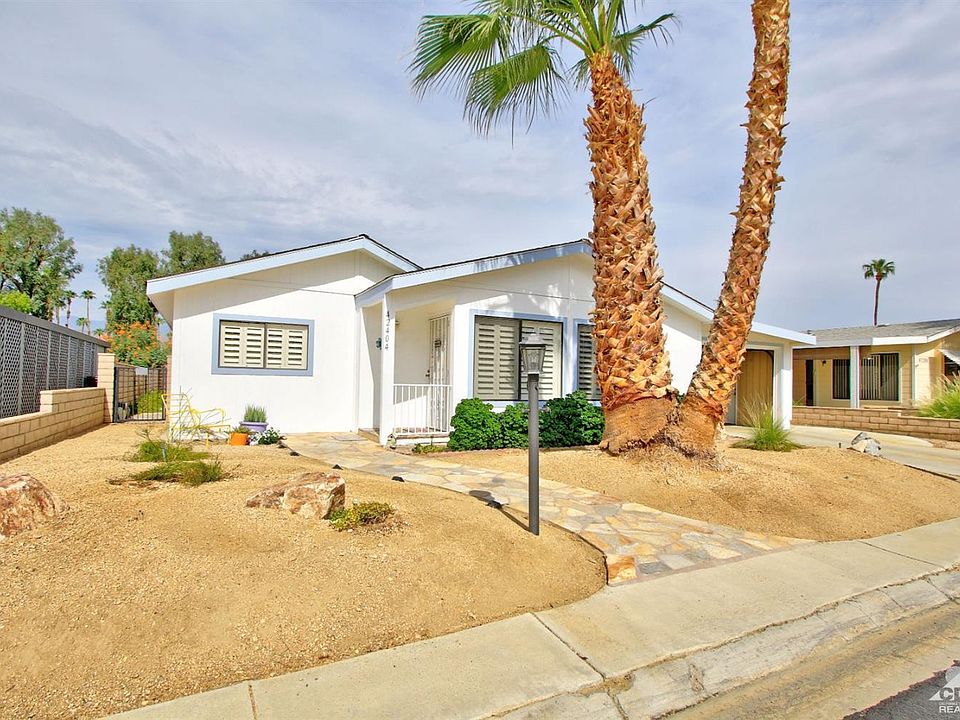 Portola CC. Charming drywall home with vaulted ceilings in living and dining rooms. This 1584 sq. ft. home offers spacious Master Suite with walk-in closet and large garden tub and separate shower. The extra large guest bedroom has two closets for lots of storage. Beautiful 32-mil laminate wood flooring throughout the living and dining areas. Separate laundry room has sink and plenty of storage. fully enclosed tandem garage and spare workshop therein. Back and side yards are enclosed for the safety and convenience of the fur babies. And the large covered patio is perfect as a sitting or entertaining area. This house is recently painted inside and the A/C unit is only 2 years old and is maintained regularly. Portola CC offers free golf to owners, three pools, tennis, bocce and pickle ball courts. Close to shopping, casinos and medical facilities. You know that you are home when you live in Portola CC.