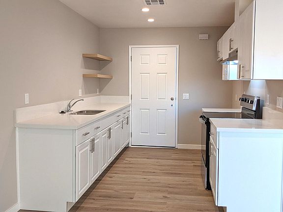Experience year-round comfort in this beautiful property featuring a brand new central heat/AC system, ceiling fans, dual paned windows with black out curtains allowing you to easily adjust the temperature to your liking, making it easy to stay comfortable no matter what the weather outside is like. The vinyl wood flooring featured throughout the home is durable, easy to clean, and adds a modern touch to the space. Open-concept space that seamlessly flows into a brand new kitchen with new stainless steel range and quartz counters, new cabinets, faucet, sink and disposal. The bedroom features a roomy closet and there is a large extra closet in the Bathroom. The bathroom features a well-lit floating vanity with the shower/tub combo. The large bathroom provides ample space for getting ready and the lighting makes it easy to apply makeup or shave. Don't forget about the ease and convenience of having an In-Unit Laundry Room and Off Street Parking!