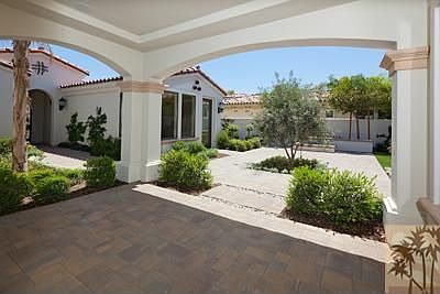 This beautiful brand new home with Early California architecture features sunny western views of golf and mountains. A grand courtyard with custom pavers, lush landscaping and a firepit leads to the guesthouse, the main home and the veranda off of the guest room. Inside, the great room flows to the outdoors with two 10 foot disappearing sliders. Gorgeous stone flooring connects the great room to the gourmet kitchen that includes Sub-Zero and Wolf appliances, a cooking grotto and custom tile backsplash. The dining room and wet bar are perfect for entertaining and the disappearing slider connects the inside to the outdoor spaces. The stunning pool and spa is surrounded by pavers and an oversized patio. The master bedroom includes a luxurious master bathroom. A private guesthouse features an en-suite bathroom and the main home has two additional guest rooms and bathrooms. Brokered And Advertised By: Toscana Homes, Inc. Listing Agent: Judith, Linda & Jamie