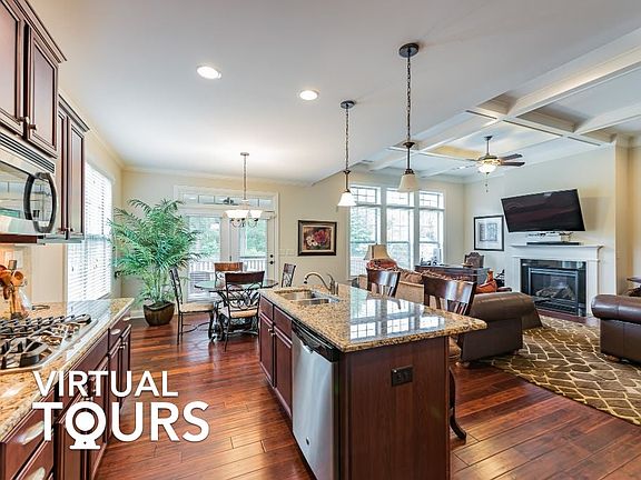 Every REX home comes with a 30-day buyback guarantee. Terms and conditions apply. Fall in love with this spectacular custom-built home with 4 bedrooms, 3.5 baths, and 3,030 square feet in the desirable Belmont Hall neighborhood in Raleigh! Loaded with designer details and high-end finishes, including rich wide plank hardwood flooring throughout the main level, large gourmet kitchen, high coffered ceilings, granite countertops, as well as a MAIN FLOOR MASTER and a huge backyard with NO REAR NEIGHBORS!! Fantastic curb appeal with a well-manicured front yard and an inviting front porch. You're welcomed inside by an elegant formal living room and dining room, finished with crown molding, tray ceiling, and decorative wainscoting. At the heart of the home is a spacious, open family room with coffered ceilings, floor to ceiling windows, and a cozy gas fireplace. Aspiring chefs will love cooking in the amazing gourmet kitchen boasting granite countertops, rich wood cabinets, crown molding, recessed lighting, stainless-steel appliances including a gas stovetop, double oven, and large island. First floor master retreat offers beautiful tray ceiling, and an en-suite bathroom with dual vanity, separate tiled shower, and an oversized soaking tub. Upstairs offers 3 large bedrooms, 2 full baths, and a spacious loft that would make an ideal playroom or additional living space. Very spacious backyard backing up to a wooded area features a screened-in covered porch with ceiling fan, perfect for outdoor dining! Separate laundry room. Two-car garage. Wonderful neighborhood with community pool just minutes from tons of shopping, restaurants, and with easy access to major roadways. Too many upgrades to mention!! A must see!