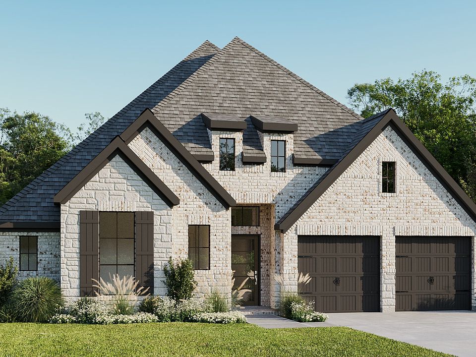 Entry welcomes with 12-foot ceiling. Game room with French doors and 12-foot ceiling off extended entry. Kitchen and dining area open to spacious family room with a wood mantel fireplace and wall of windows. Kitchen hosts inviting island with built-in seating space and 5-burner gas cooktop. Primary suite includes bedroom with 12-foot ceiling. Double doors lead to primary bath with dual vanities, garden tub, separate glass-enclosed shower and two walk-in closets. Abundant closet space and natural light throughout. Extended covered backyard patio. Mud room off three-car garage with additional storage space.