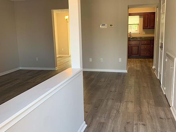 This 3-bedroom, 1.5 bath End-Unit Townhome is PERFECT and has brand new everything! Beautifully updated with stainless steel-appliance, modern wood flooring, fresh paint throughout, and more! Kitchen is beautiful with upgraded cabinets and granite countertops. Bedrooms and closets are spacious. Plenty of natural sunlight pours through-out this end-unit. Backyard is a great size, fenced, and backs to trees for plenty of privacy. The yard is beautifully cared for with nice landscaping. The neighborhood is quiet and also well cared for. Side shed provides extra storage space. This house is ready! Just move in your furniture. Don't miss this one! Photos and virtual tour coming April 8th.