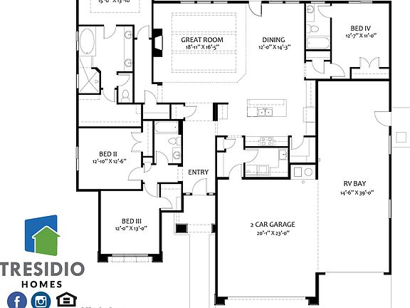 Featuring a stunning tray ceiling in the large, open great room, the Arcadia defines luxury while utilizing functionality. With four bedrooms and three bathrooms, there's plenty of room for family and guests while a two-car garage plus an RV bay means plenty of room for cars and toys.
