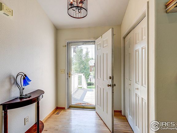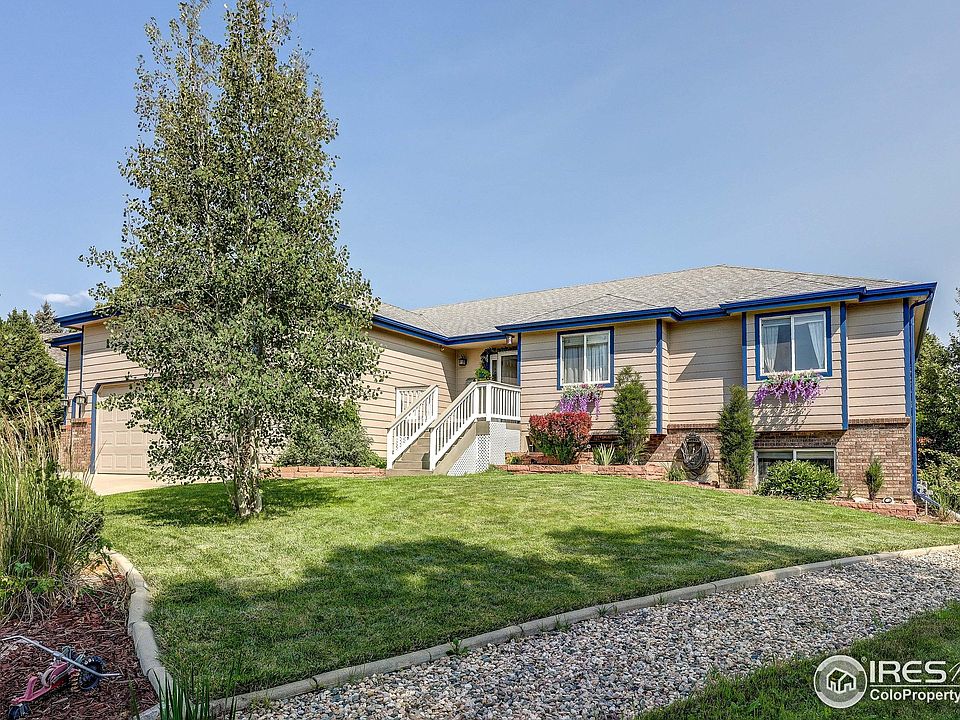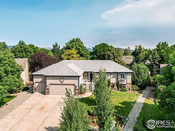 Welcome home to this bright and airy ranch-style gem, nestled on over 1/3 of an acre with a very low HOA! This open-concept home boasts a finished daylight basement and five bedrooms, including the spacious primary suite on the main level, complete with a cedar walk-in closet. Soaring cathedral ceilings and an abundance of windows fill every room with natural light, creating a spacious, inviting atmosphere. The main level features beautiful wood flooring in the living, dining, and kitchen areas, complemented by wood-look tile in the bedrooms. The kitchen offers ample cabinetry, stainless steel appliances, and an efficient layout. Downstairs, the cozy finished basement is perfect for entertaining, with upgraded carpeting, a large family room, game area, and a wet bar. Additional upgrades throughout the home include a water softening system, recently updated, larger A/C unit, a new water heater, and fresh paint on deck railing. The roof, gutters, and exterior trim were all updated in 2025.Step outside to a professionally landscaped backyard oasis featuring lush Kentucky Bluegrass, cement curbing, and a full sprinkler system in both the front and back yards. Enjoy the outdoors from your low-maintenance composite deck or explore the thoughtfully designed east-side yard with a garden area, enclosed chicken coop, and a sanded bocce ball court. Extras include a large storage building with workbench, a charming studio-style clubhouse (perfect for a she-shed or creative space), and a housed hot tub-ideal for relaxing year-round. Ideally situated just a 6-minute drive to Thompson Valley Towne Center-home to a grocery store, hardware store, UPS, gym, car mechanic, and a variety of restaurants-you'll enjoy both peaceful living and everyday convenience. Plus, you're only a few minutes' walk to Boedecker Lake, 11 minutes from downtown Loveland, and just 40 minutes from the stunning mountain getaway of Estes Park. This home is truly the complete package, inside and out!