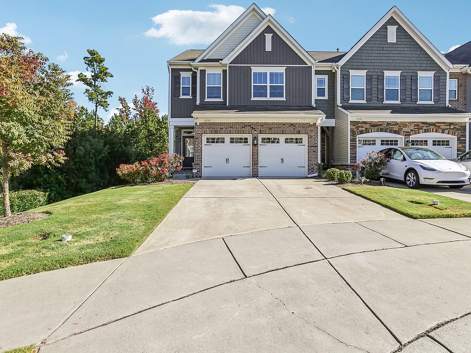 This stunning end-unit townhome, complete with a finished basement and a spacious 2-car garage, offers the perfect blend of luxury and convenience. Boasting 4 spacious bedrooms, a versatile flex room, 2 inviting living areas, and 3.5 beautifully appointed bathrooms, this home is designed for both comfort and functionality. Upgrades abound, including elegant laminate flooring throughout the living areas, hardwood stairs, quartz countertops, and high-end stainless-steel appliances. You'll love the scenic wooded views, adding a touch of tranquility to everyday living. Located in the heart of the prestigious Research Triangle, you're just moments away from major employers like Cisco, Credit Suisse, and IBM, with the upcoming Apple campus nearby. Commuting is a breeze with easy access to Hwy 55, I-40/540, and the airport. Plus, you're just 2 miles from Wegmans, Harris Teeter, Food Lion, Parkside Town Commons, restaurants, parks, and countless entertainment options. This home offers the perfect combination of modern upgrades, serene views, a 2-car garage, and an unbeatable location—ideal for enjoying all the area has to offer with family and friends!