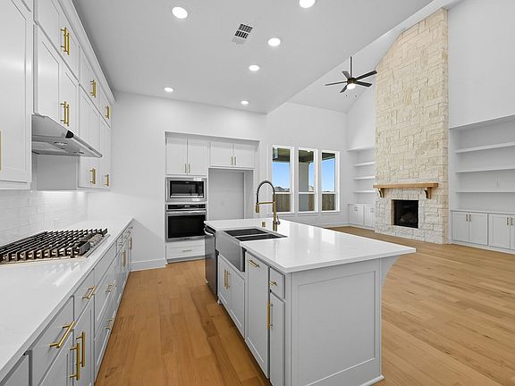MLS# 20915609 - Built by Highland Homes - Ready Now! ~ Gorgeous new plan two-story house! Stone fireplace in family room, luxury kitchen with classic island, beautiful quartz countertops, pre-painted cabinets, undercabinet lighting, hutch area in family room. Upgraded wood flooring in main living area including study. Upgraded carpet in all bedrooms, entertainment room, game room and pocket office. Upgraded tile in all bathrooms and wet areas. Freestanding tub in primary bathroom.