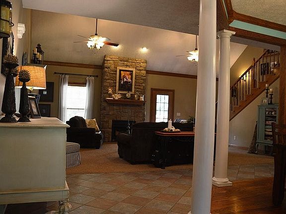 5 BEDROOM HOME ON 7.54 ACRES. This gorgeous home setting on 7 park-like acres has so much to offer! Large living room with vaulted ceilings, stone fireplace, and formal dining. The custom kitchen features hickory cabinets, granite counter tops, and breakfast nook. On the main floor you will find the master bedroom, large master bath with jetted tub, walk-in shower, double sink vanity as well as a make-up vanity,large walk-in closet with access to the laundry room, 2 additional bedrooms and a full bath are also located on the main floor. Upstairs is second living area, another full bath and bedroom.In the basement you will see the third living space, another bedroom and full bath, storage area and a separate room for a man cave (not pictured for privacy). This property also features a 35x45 shop that has concrete floor with wood heat. Please contact us for more details or to look. The driveway is right off of a state maintained road.