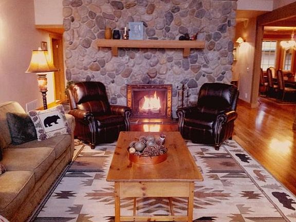 HAND CRAFTED BEAUTY- THIS NORTHWEST RUSTIC HOME HAS A HUGE WRAPAROUND DECK FOR OUTDOOR ENTERTAINING and BREATHTAKING LAKE and MOUNTAIN VIEWS. FEATURES INCLUDE RECLAIMED WIDE PLANK FLOORING, PINE CEILINGS, OLD WORLD PLASTER WALLS, MASSIVE GREAT ROOM W/ 25 FT. STONE WOOD BURNING FIREPLACE OFFERING THE ISOKERN SYSTEM, MASTER SUITE W/ FIREPLACE and EXERCISE ROOM, SECOND FLOOR LOFT, 2 BEDROOM SUITES EACH W/ FIREPLACES, GOURMET KITCHEN W/ COOKING PENINSULA and BREAKFAST BAR, SPACIOUS DINING ROOM, OVERSIZED 3 CAR GARAGE W/ ROOM FOR ALL YOUR TOOLS and TOYS. THERE ARE AUTO SUN SHADES and 2 LOWER LEVEL STORAGE ROOMS.